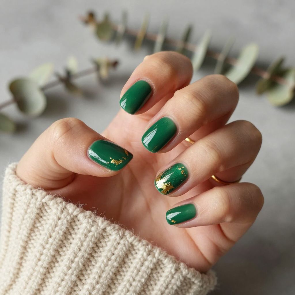 Line up five green tones from sage to deep forest and paint each nail a single shade