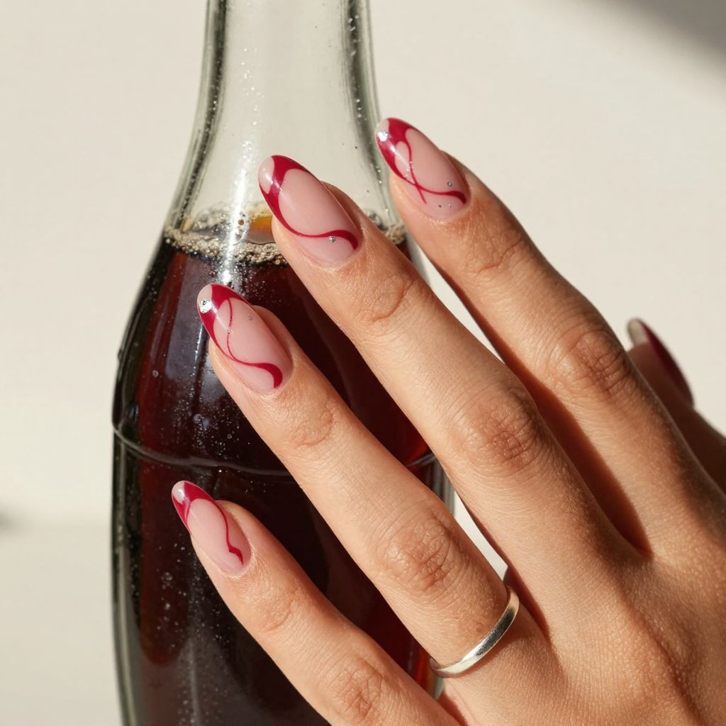Cherry cola swirls dark red nails