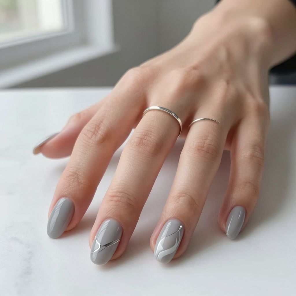 This design works well because it allows negative space to do part of the visual work. The gray lines can be soft and painterly or slightly geometric, depending on how modern you want the result to feel. It is a great final option for gray nail ideas because it blends minimalism with a little creative flair.