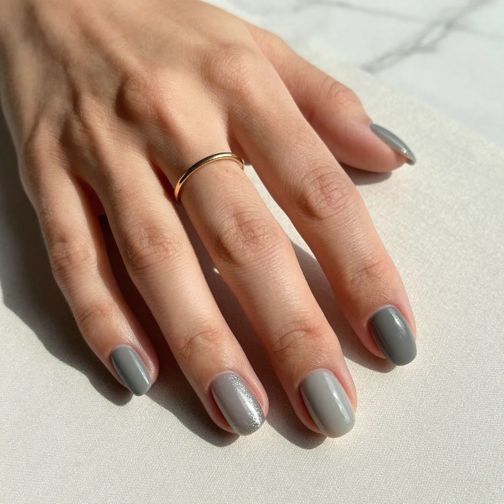 The beauty of this design lies in its restraint. You can keep the nails uniform for a refined finish, or add a barely there shimmer on one accent nail if you want a little dimension. I like this style for clients who want gray nail ideas that feel timeless rather than trendy.