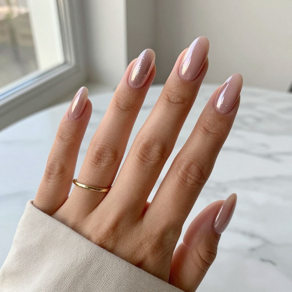 - Accent details: Optional sheer shimmer accent nail.
