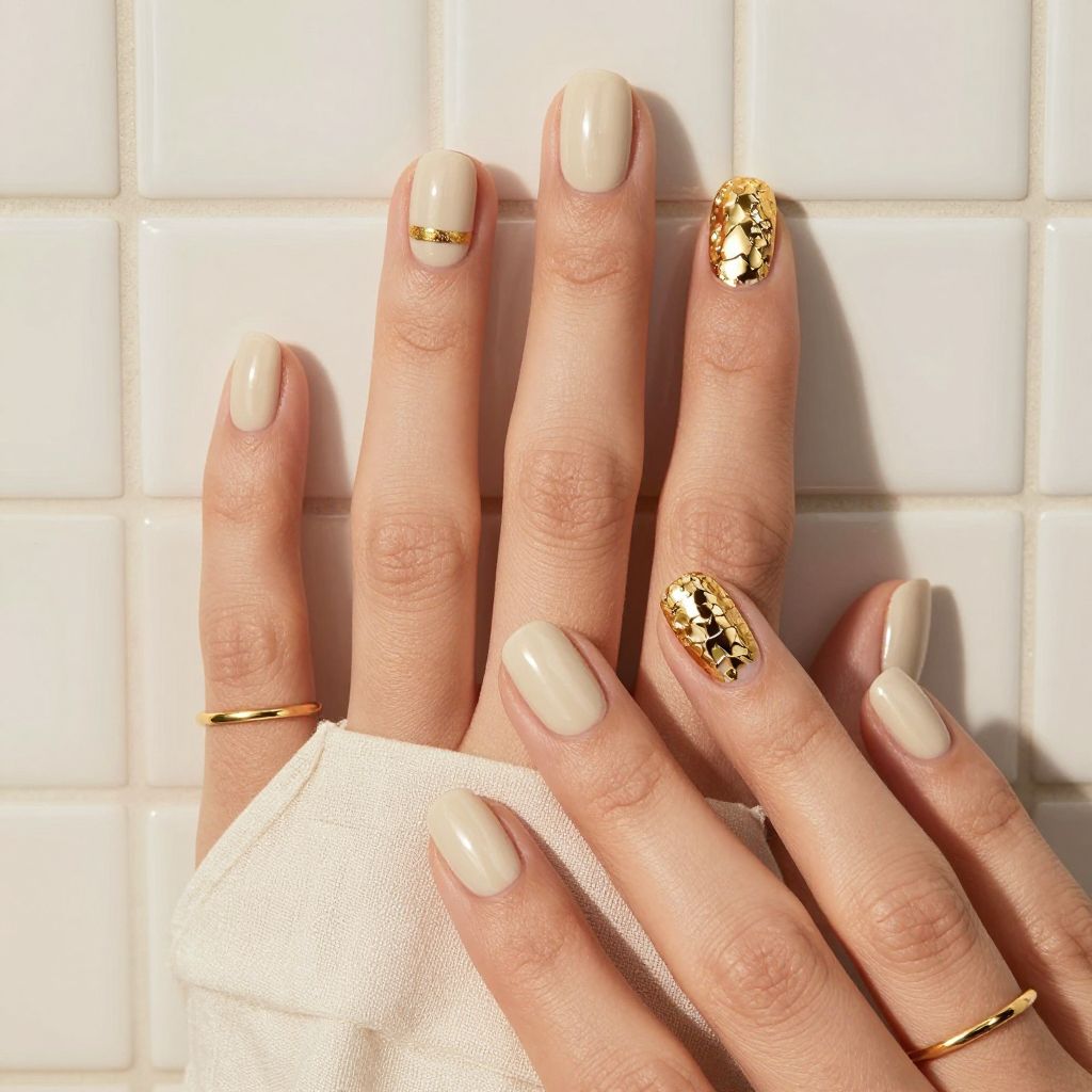 Tap irregular gold leaf on two accent nails for extra warmth.