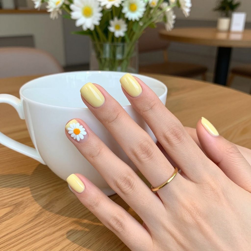 I mix clear gel with a drop of white, float tiny pressed petals inside, and seal with a glossy layer