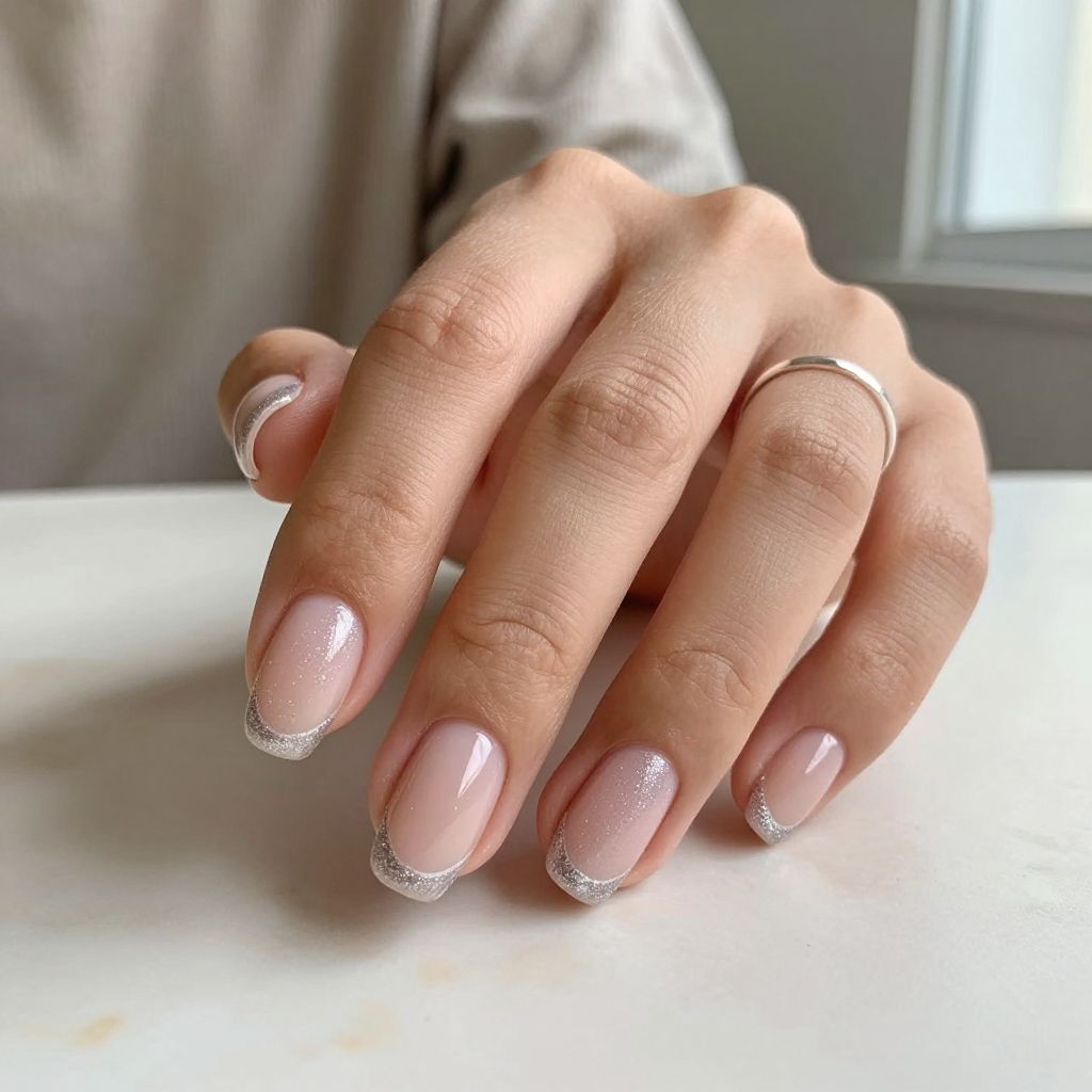 Silver Glitter Tips on Nude Base